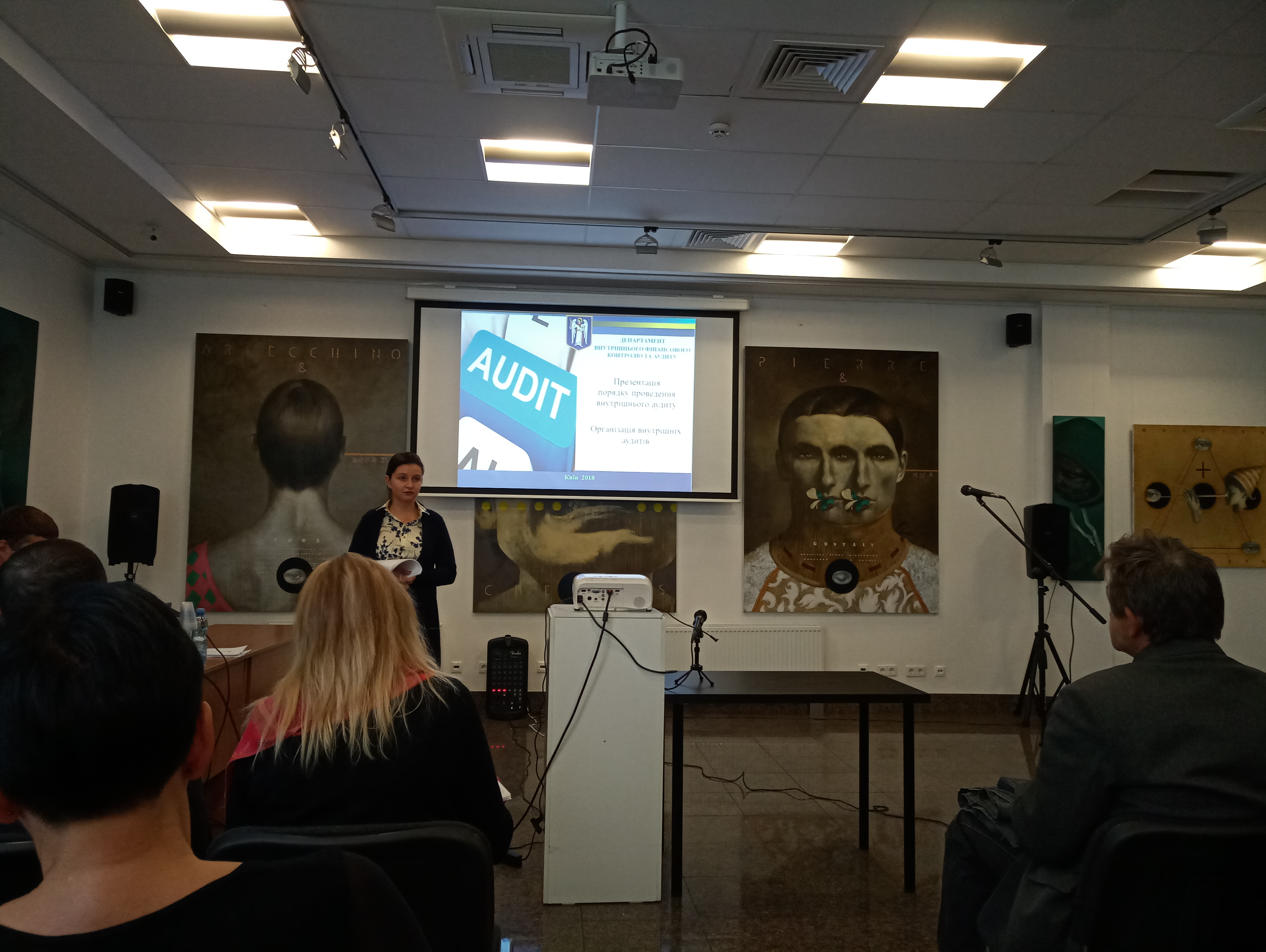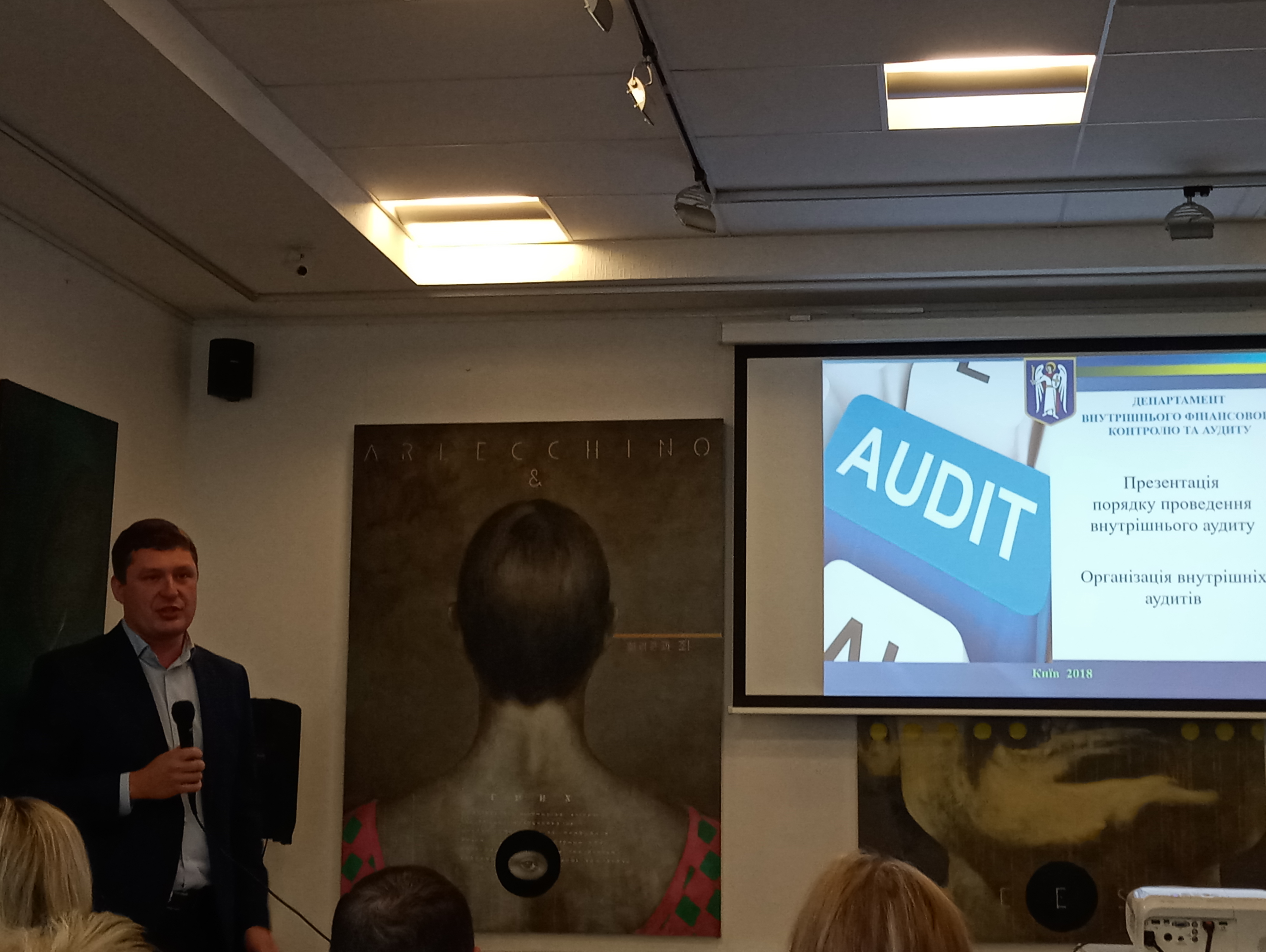 Головними спікерами виступили директор Департаменту Oksana Koltyk, та її заступники: Антон Коломієць та Олександр Богун (Oleksandr Bohun). Головними темами семінару були зміни в роботі внутрішніх аудиторів структурних підрозділів КМДА, спричинені новим Порядком: алгоритм діяльності аудиторів, їх права та обов'язки, форми робочих документів тощо. Крім того, були роз'яснені питання щодо впровадження та застосування автоматизованої бази даних "Результати аудиту". Новий Порядок відкрив шлях до підвищення якості внутрішнього аудиту в КМДА, підвищення статусу внутрішніх аудиторів і довіри керівництва та громадськості до результатів їх діяльності. Цей захід був першим серед низки інших тематичних семінарів, присвячених новому Порядку. Слідкуйте за новинами! IMG_20181106_103552.jpgIMG_20181106_105922.jpgIMG_20181106_112212.jpgIMG_20181106_123314.jpgIMG_20181106_123329.jpgIMG_20181106_093228.jpgIMG_20181106_093708.jpgIMG_20181106_093719.jpg